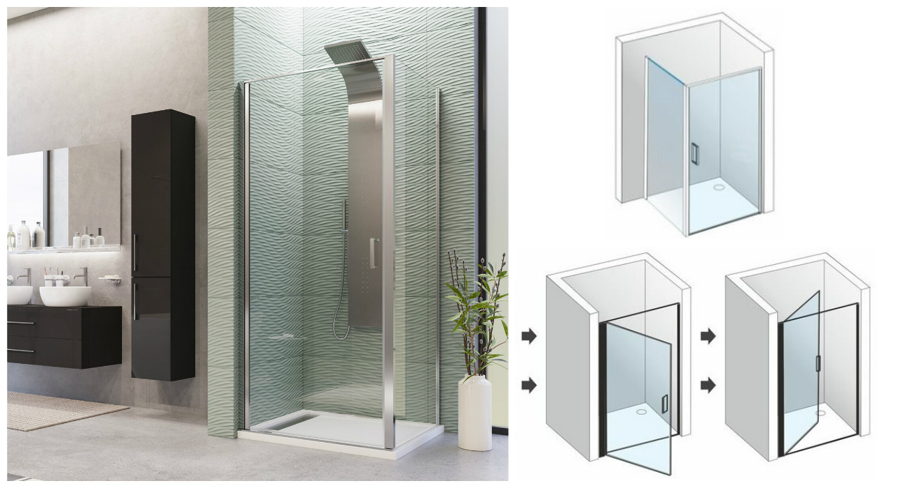 Aquatek YES B1+F1 sprchový kút s jednokrídlovými dverami otváravými dnu aj von | Aquatek YES B5+F1 sprchový kút s krídlovým otváraním dnu aj von |