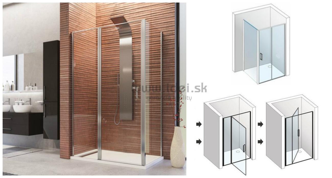 Sprchový kút vznikne kombináciou sprchových dverí a pevnej steny. Výsledná cena je za komplet sprchový kút!