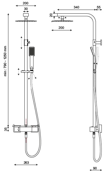 - rozmery hlavovej sprchy: 200 x 200 x 20 mm