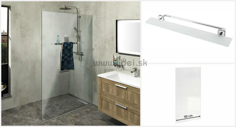 - Polysan ARCHITEX LINE sprchová zástena so skrytým kotvením 90 cm s policou a držiakom uterákov