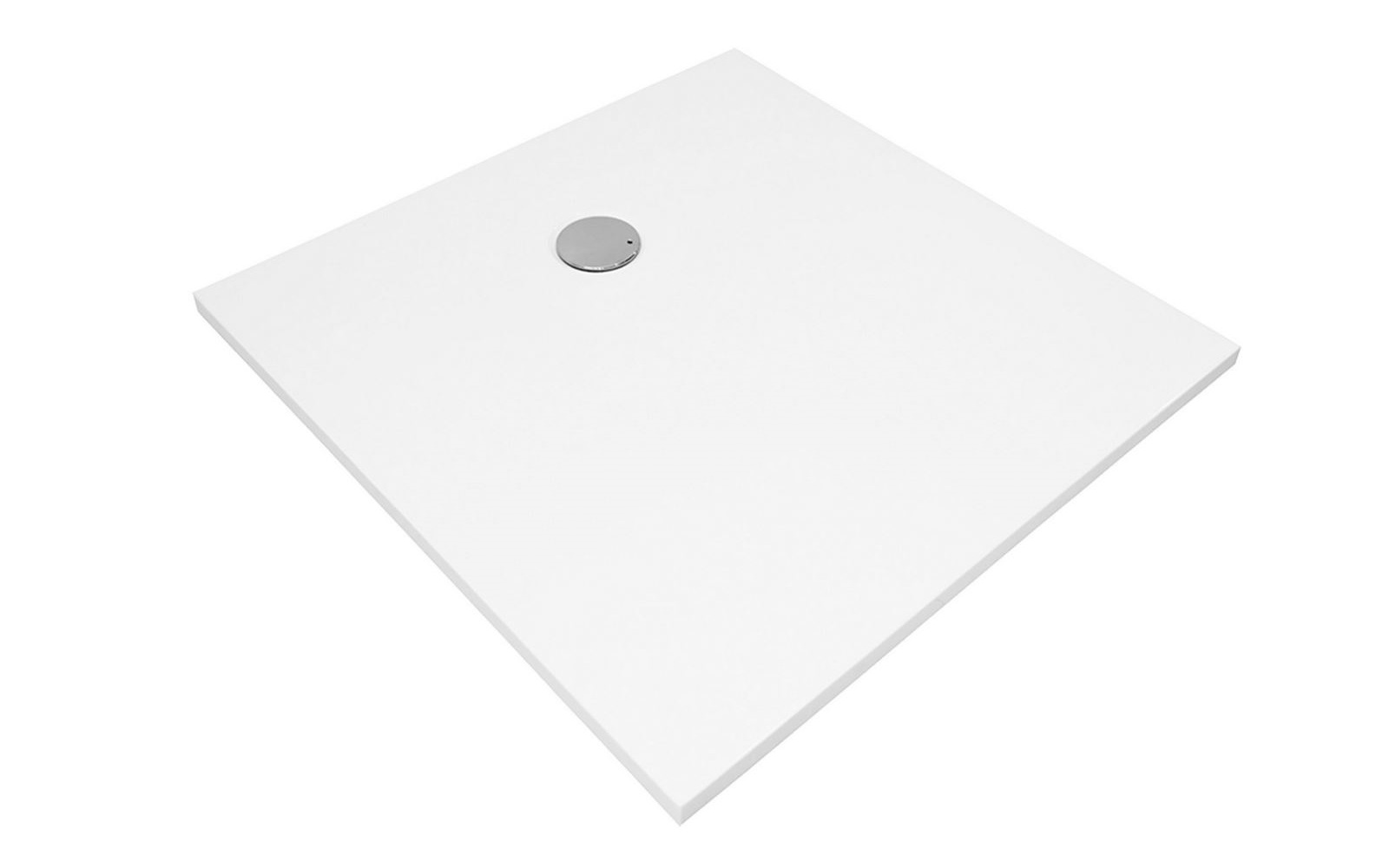 Štýlová sprchová vanička s chrómovou krytkou odtoku.