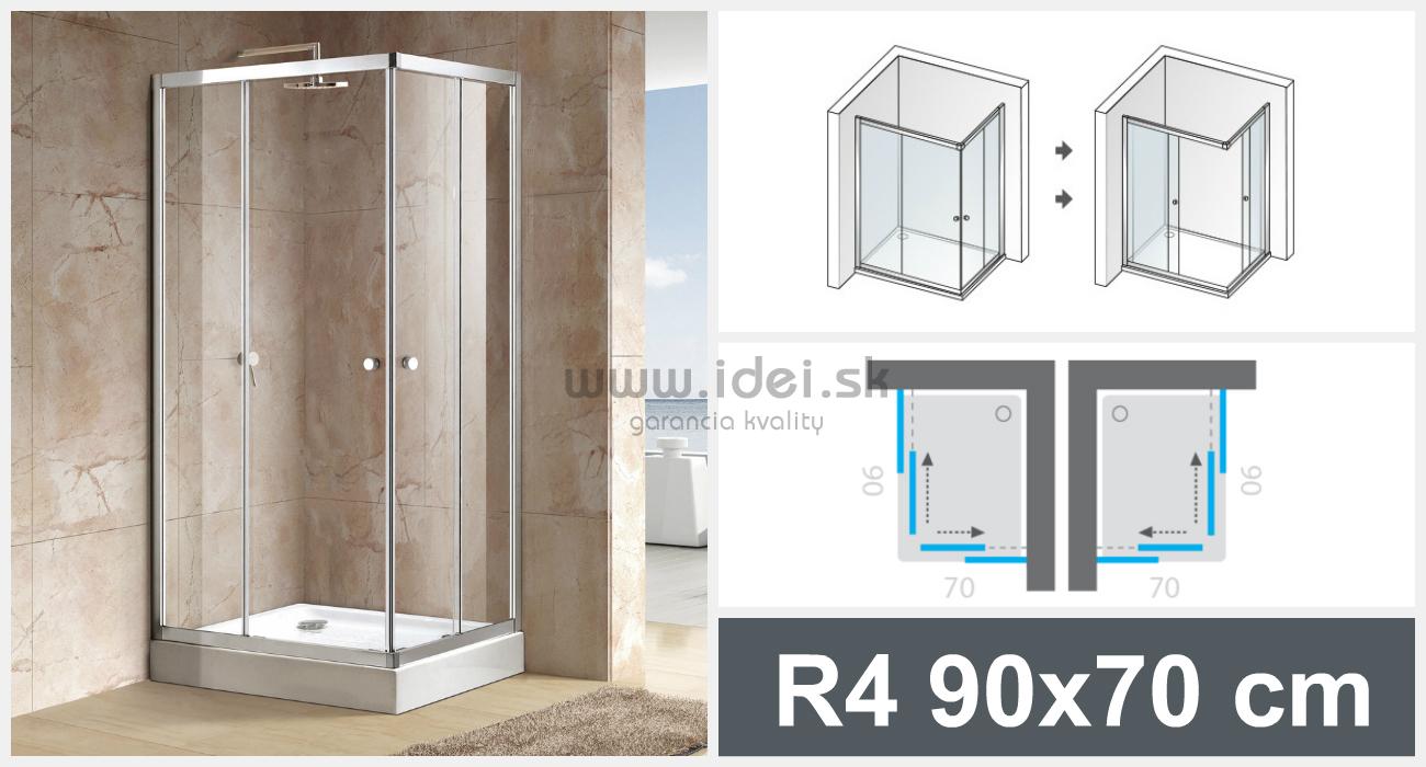 - Aquatek HOLIDAY R4 90x70 cm obdĺžnikový sprchový kút s rohovým vstupom, číre sklo
