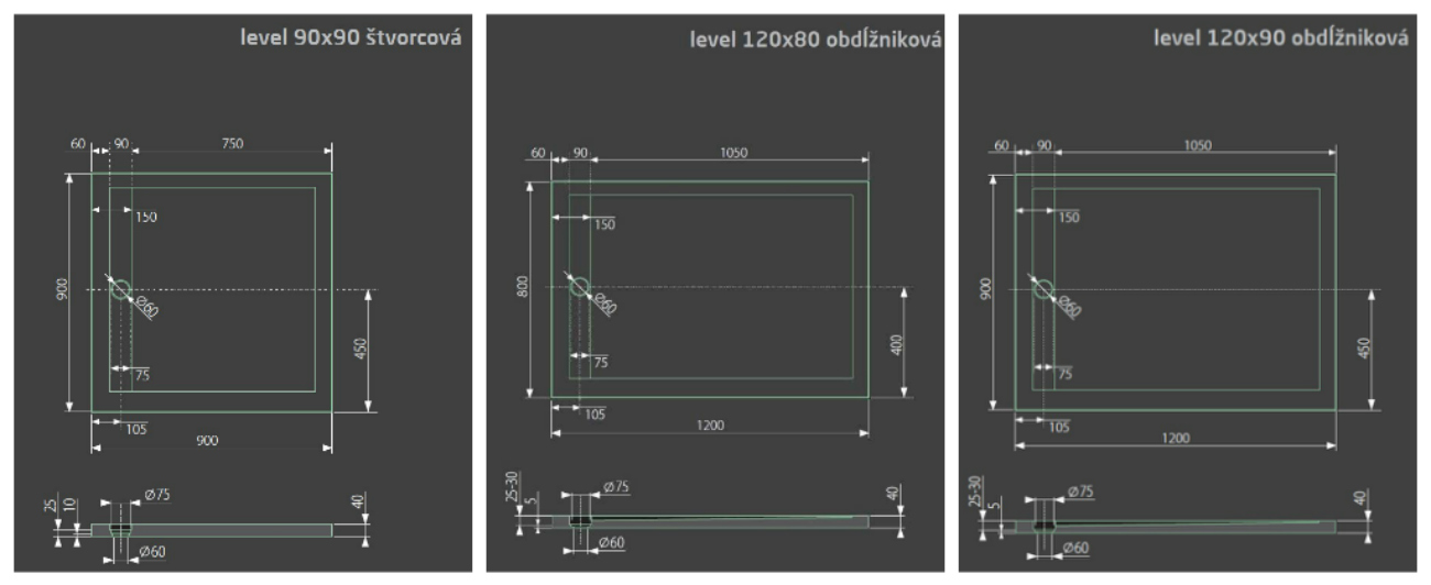 Aquatek LEVEL sprchová vanička z liateho mramoru 80-120 cm1-2 dni (skladom)cena od 274,80 €/ kscena od 223,42 € bez DPH