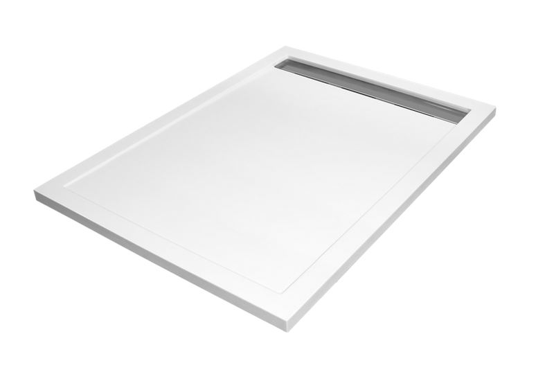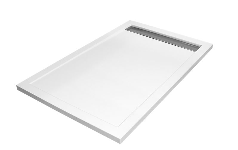 Štýlová sprchová vanička s odtokom v tvare žľabu.