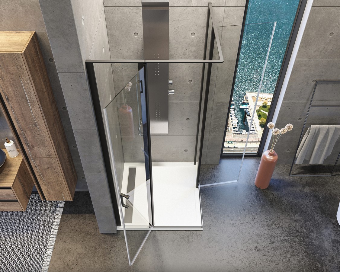 Sprchový kút YES A4 sa vyznačuje jednoduchými líniami v čiernom prevedení. Sklo je vyrobené v hrúbke 6 mm, čire s Nano povrchovou úpravou TEKNO.CAL, ktorá zabezpečuje jednoduché čistenie, a odpudzovanie vodného kameňa. Dvojkrídlové dvere sa ľahko otvárajú dnu i von.