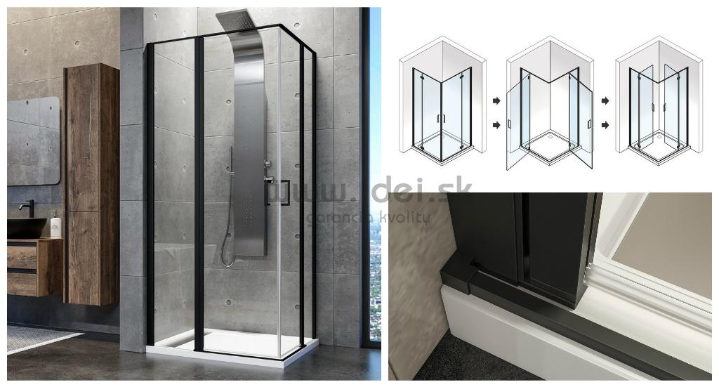 Čierny sprchový kút s pevným rámom a hornou vodiacou lištou. Záruka 24 mesiacov.