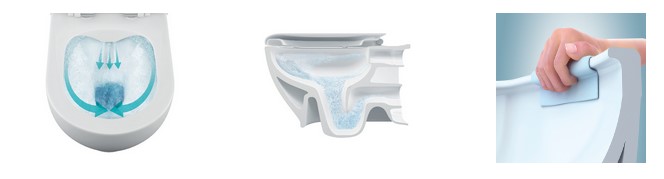 WC misa v sete s nádržkou a sedátkom. Technológia rimless pomáha pri údržbe čistého WC, keďže nemá splachovací okruh čístenie je jednoduché aj pomocou handričky. Neusádzajú sa nečistoty ani vodný kameň, tým sa predĺži životnosť wc misy.