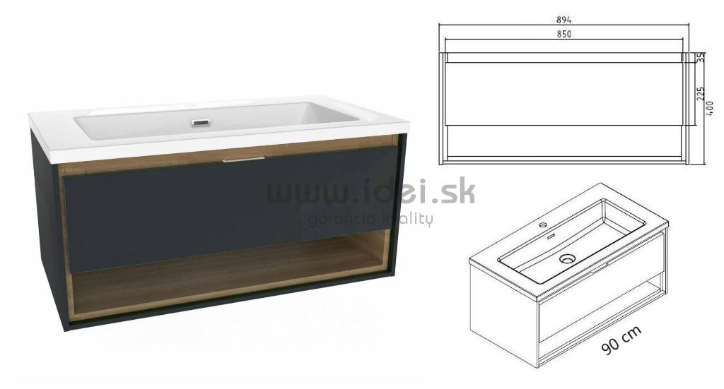 - Kielle MEARA skrinka s umývadlom 90 cm tmavo sivá/tmavý dub