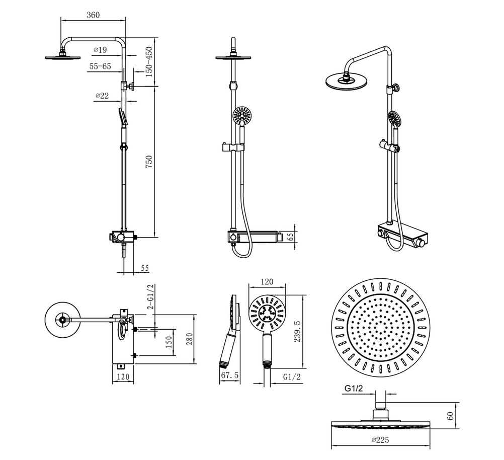 - hlavová sprcha priemer 225 mm, pripojenie G 1/2