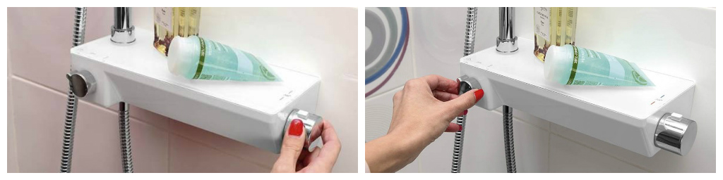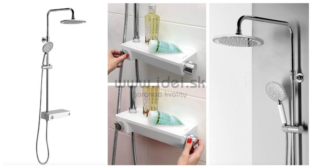 Sprchový stĺp s termostatickou batériou a praktickou poličkou