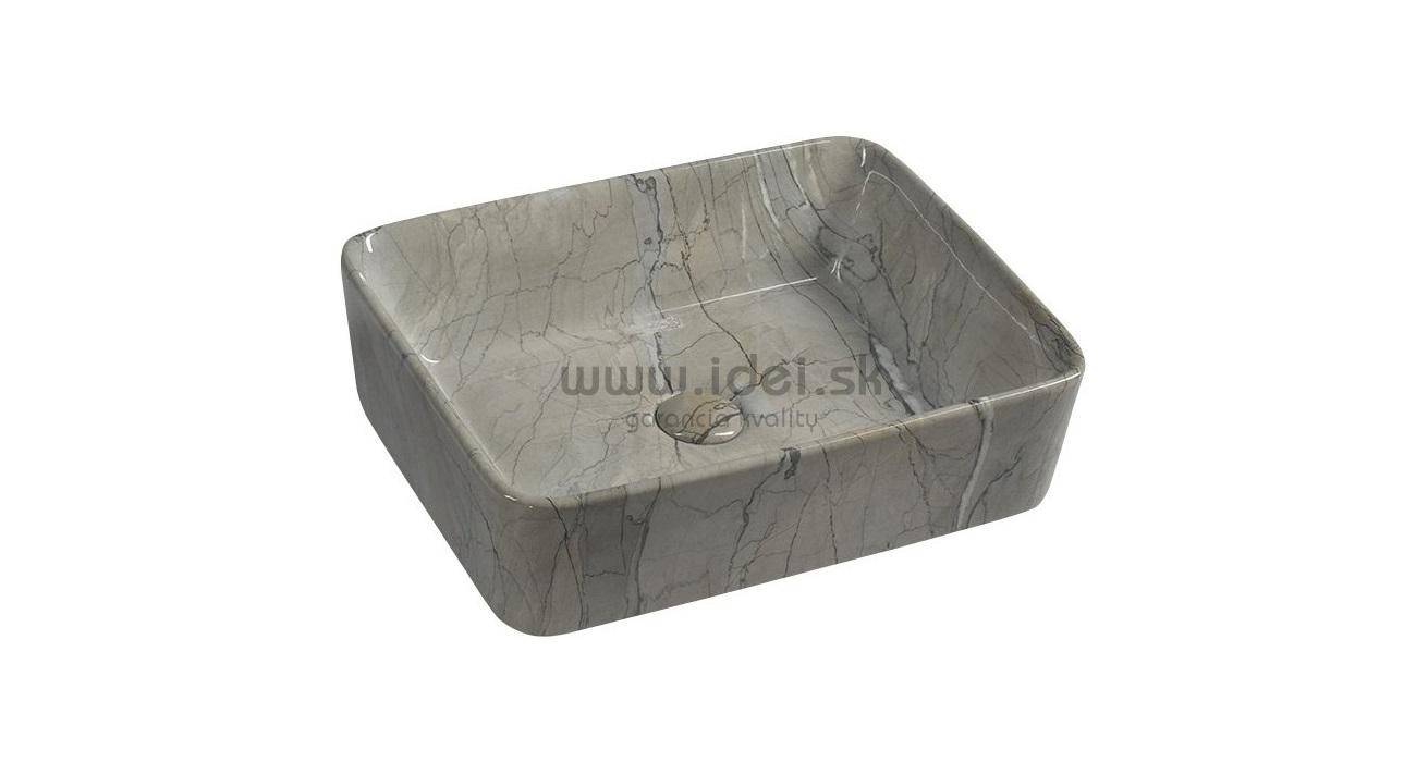 - Obdĺžnikové keramické umývadlo na dosku s imitáciou mramoru šedé