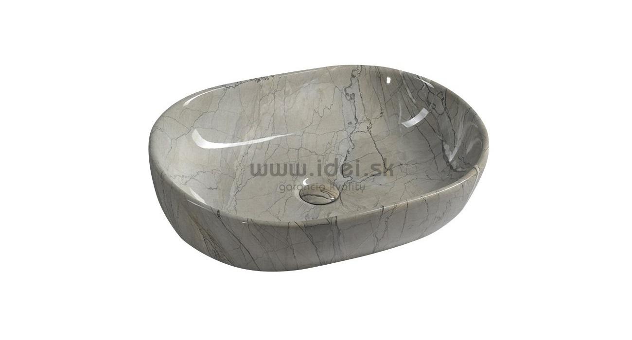 - Oválne keramické umývadlo na dosku s imitáciou mramoru šedé