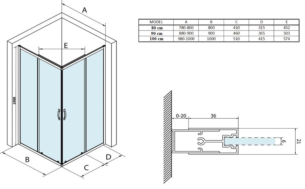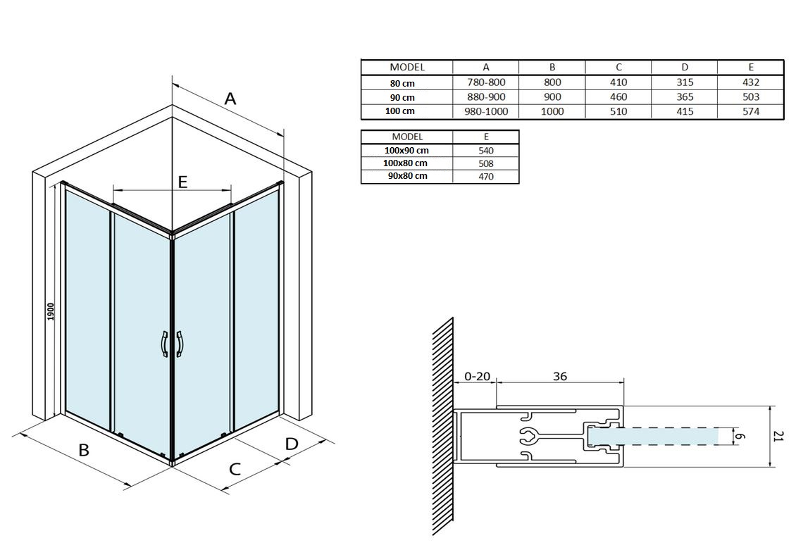 Vyberte si sprchový kút podľa tvaru, typu otvárania a rozmeru, kliknite na schému a pozrite si bližšie informácie o Vami vybranom sprchovom kúte. Prevedenie je univerzálne pravé/ľavé: