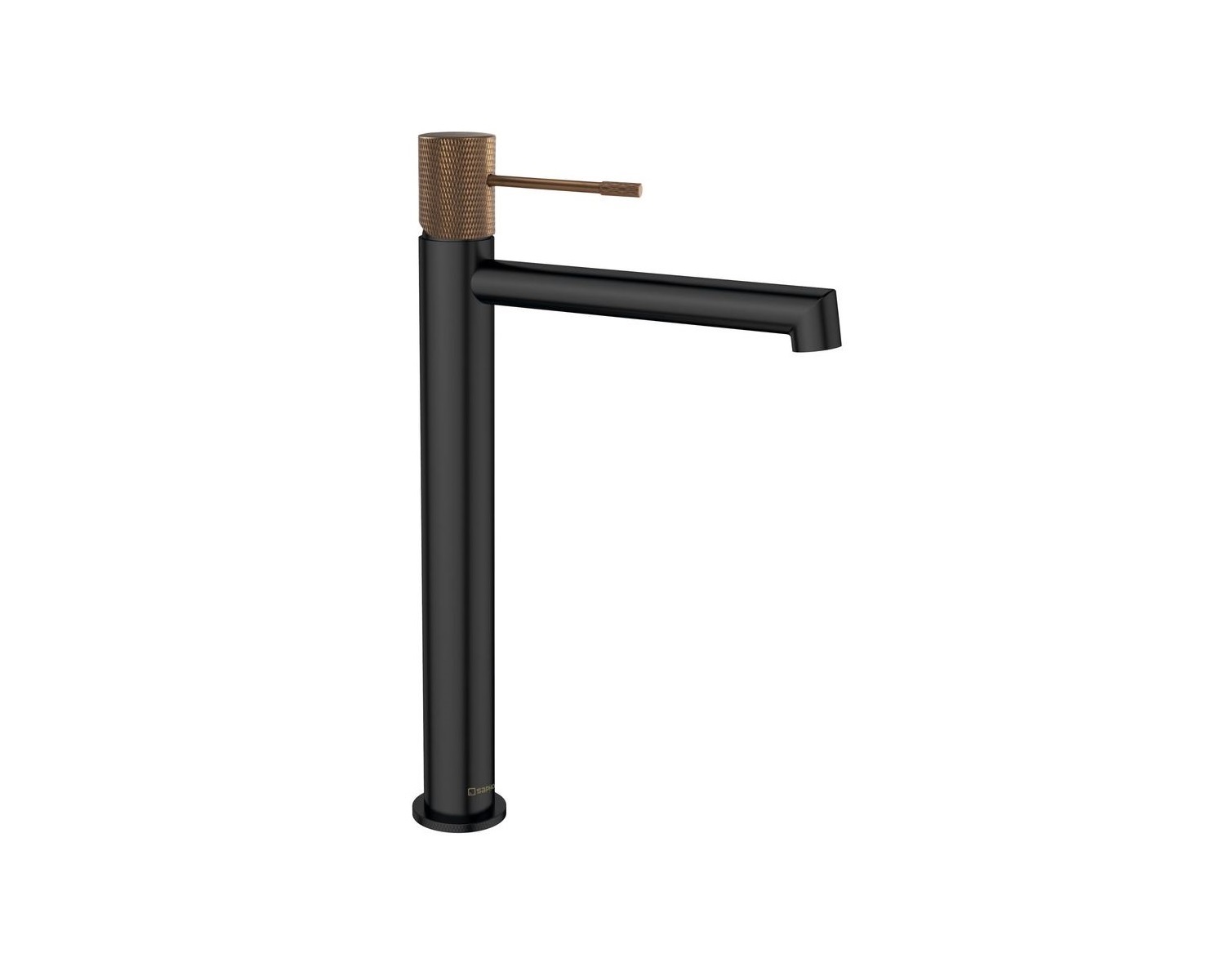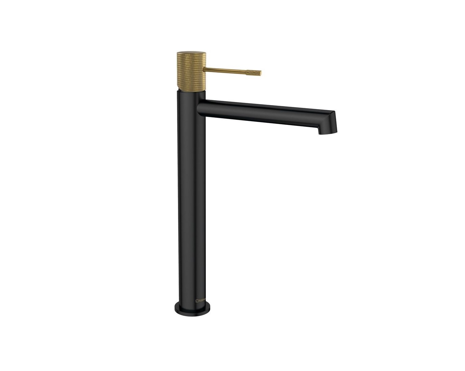 Táto vysoká stojánková umývadlová batéria krásne dotvorí vzhľad vašej kúpeľne. Jej výhodou je že klasické čierne matné prevedenie, ktoré sa hodí do industriálnej kúpeľne môžete oživiť zlatým alebo medeným ovládaním. Viete si jednoducho zladiť vodovodnú batériu napríklad s úchytmi na kúpeľnovom nábytku.