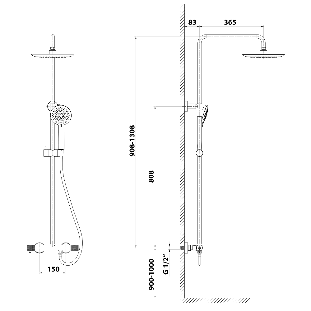 - inštalácia: nástenná 150 mm