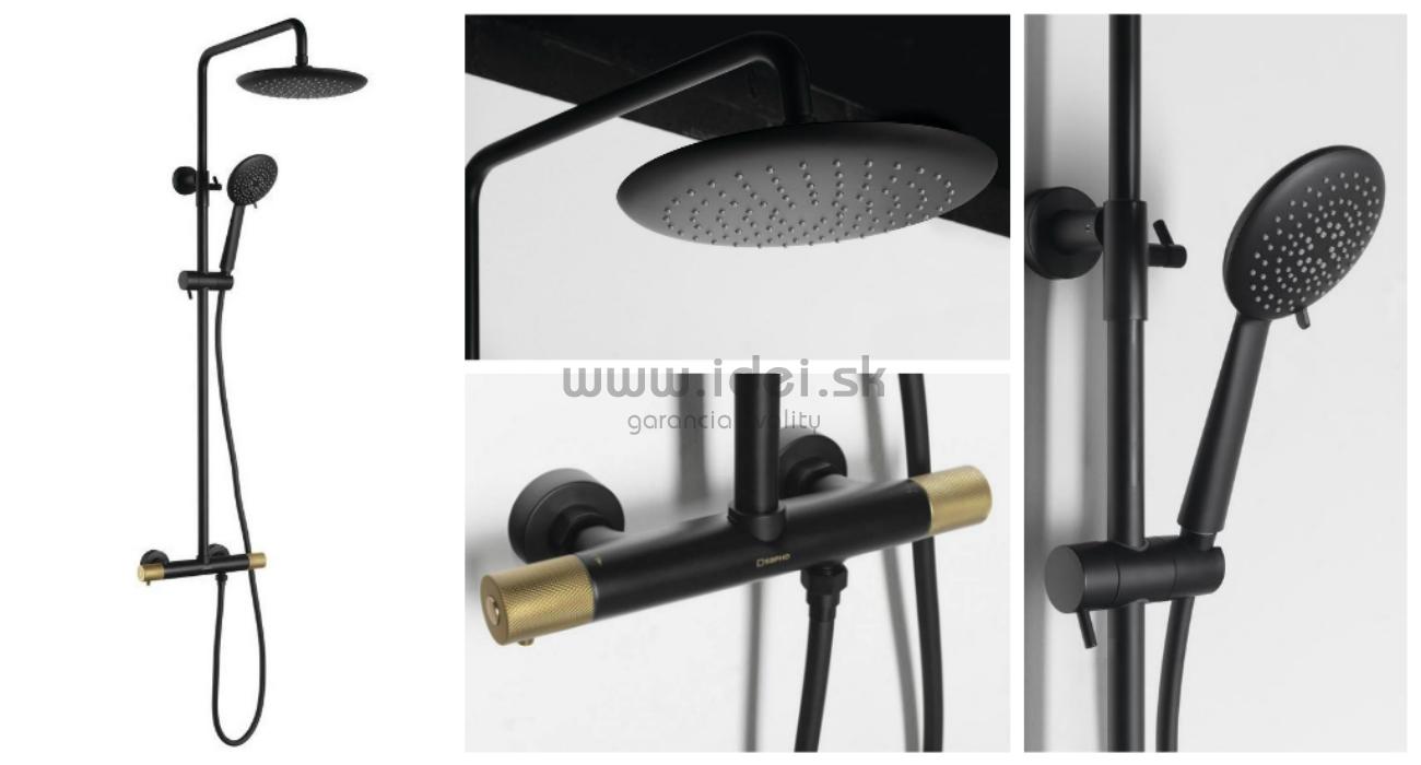 - SOLARIS čierno-zlatý sprchový set s termostatickou batériou