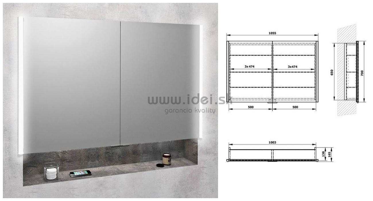 - Zrkadlová zapustená skrinka INTEGRA 105 cm s LED osvetlením